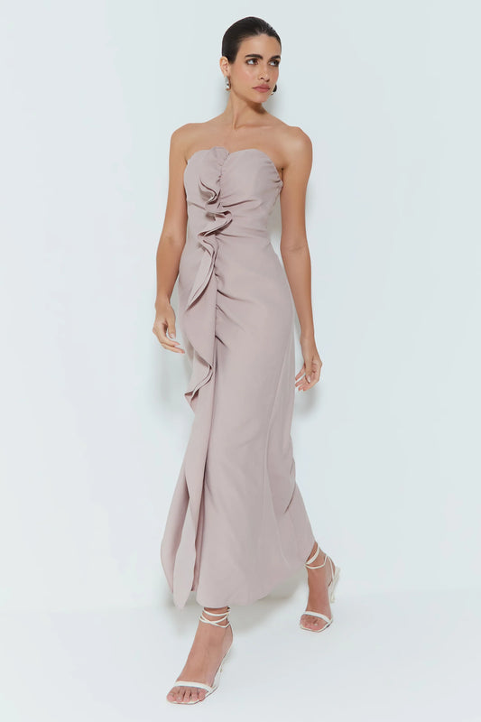 VESTIDO MIDI TOMARA QUE CAÍA COM DETALLES